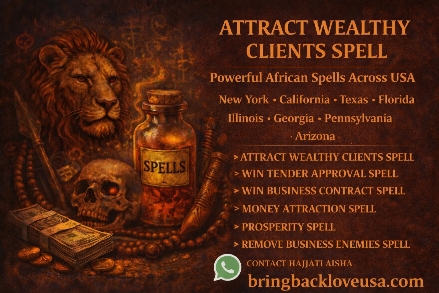 I am HAJJATI AISHA, a trusted AFRICAN SPELL CASTER, and many entrepreneurs across the United States come to me when they want to attract serious clients who bring real financial success. My powerful ATTRACT WEALTHY CLIENTS SPELL is designed to open financial pathways so that your business begins attracting high-value customers who are ready to invest in your services.