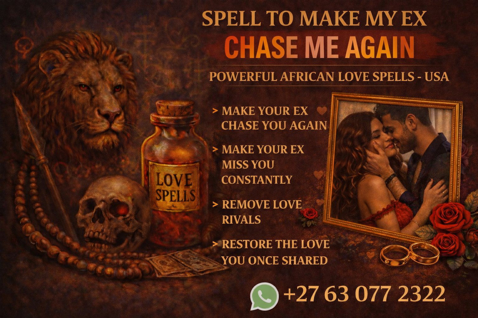 As Hajjati Aisha, a trusted African love spell caster helping clients across the United States, I perform powerful traditional spiritual rituals designed to restore emotional attraction and help your ex begin chasing the relationship again.