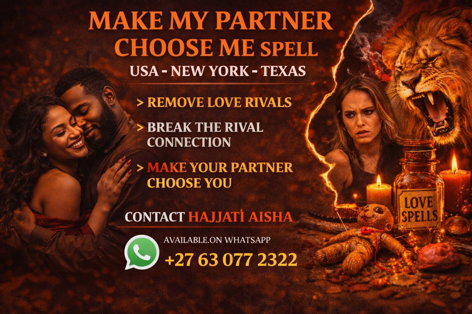 As Hajjati Aisha, a trusted African love spell caster helping clients across the United States, I perform powerful traditional rituals designed to restore emotional attraction and help your ex realize the connection you once shared.