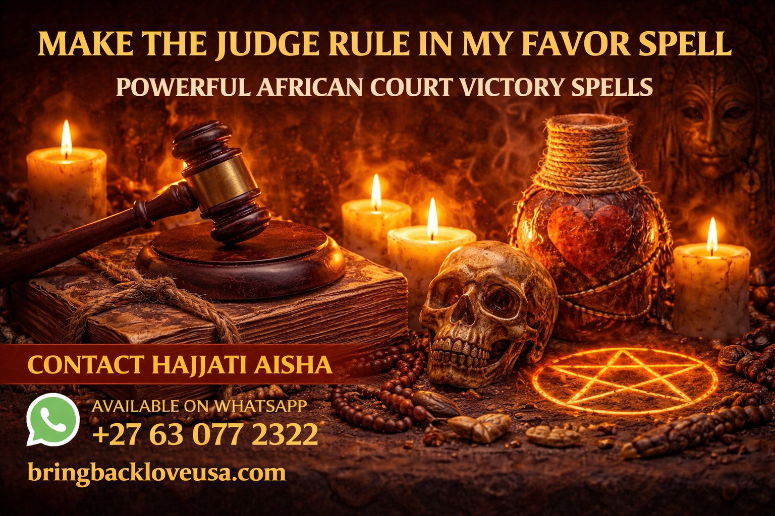 I am HAJJATI AISHA, a powerful AFRICAN SPELL CASTER known for helping many clients overcome serious life situations through strong spiritual work. My MAKE THE JUDGE RULE IN MY FAVOR SPELL is designed to remove spiritual obstacles, weaken enemies in legal disputes, and open the path for justice, favor, and victory.