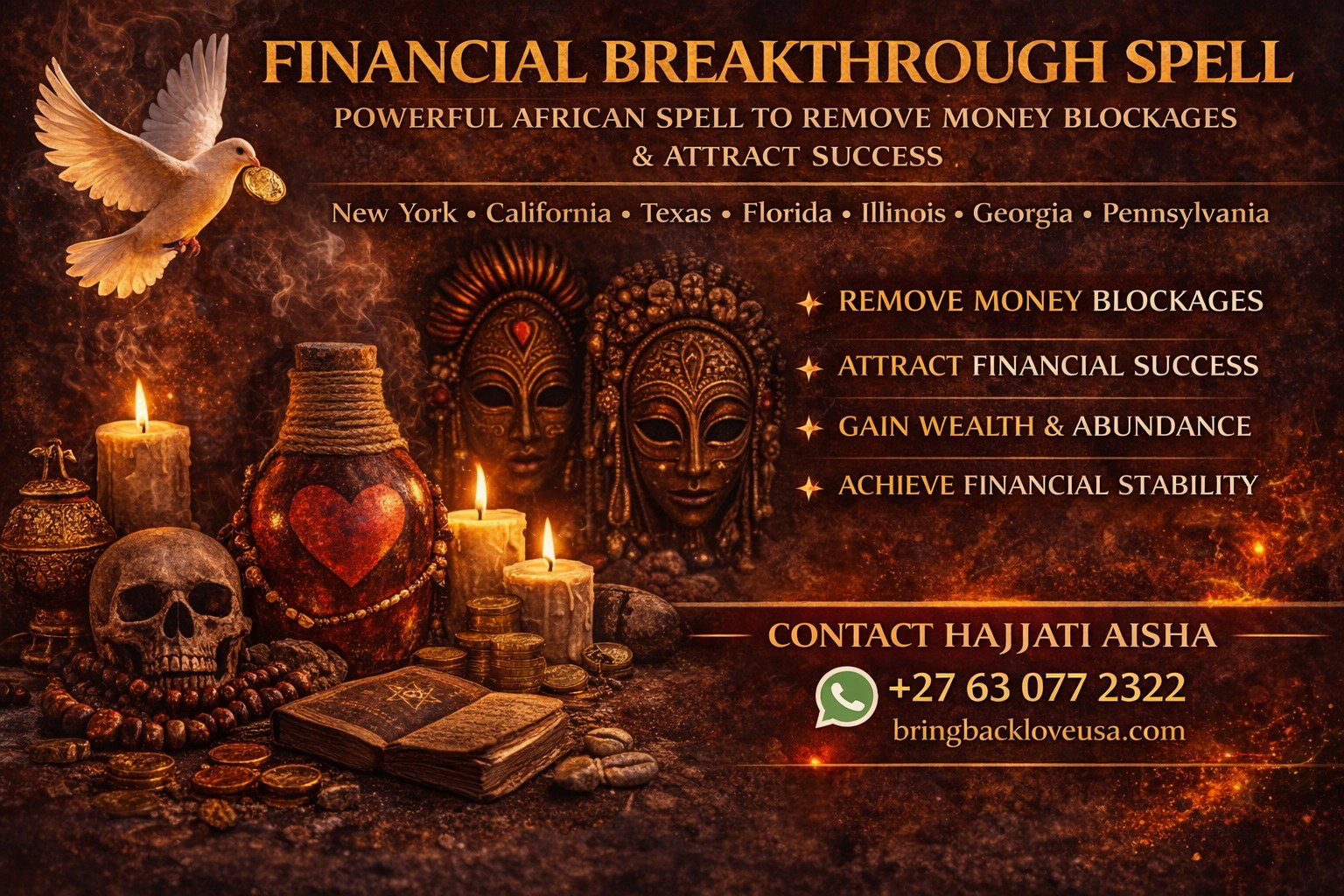 I am HAJJATI AISHA, a trusted AFRICAN SPELL CASTER, and many people across the United States contact me when they need powerful help removing financial blockages and attracting prosperity. My powerful FINANCIAL BREAKTHROUGH SPELL is designed to remove obstacles that block success and open powerful opportunities that attract money and financial stability.