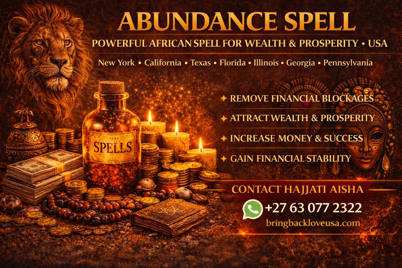 I am HAJJATI AISHA, a trusted AFRICAN SPELL CASTER, and many people across the United States contact me when they need powerful help attracting prosperity and abundance. My powerful ABUNDANCE SPELL is designed to remove financial blockages, attract wealth, and open powerful opportunities so that money, success, and prosperity begin to flow naturally into your life.