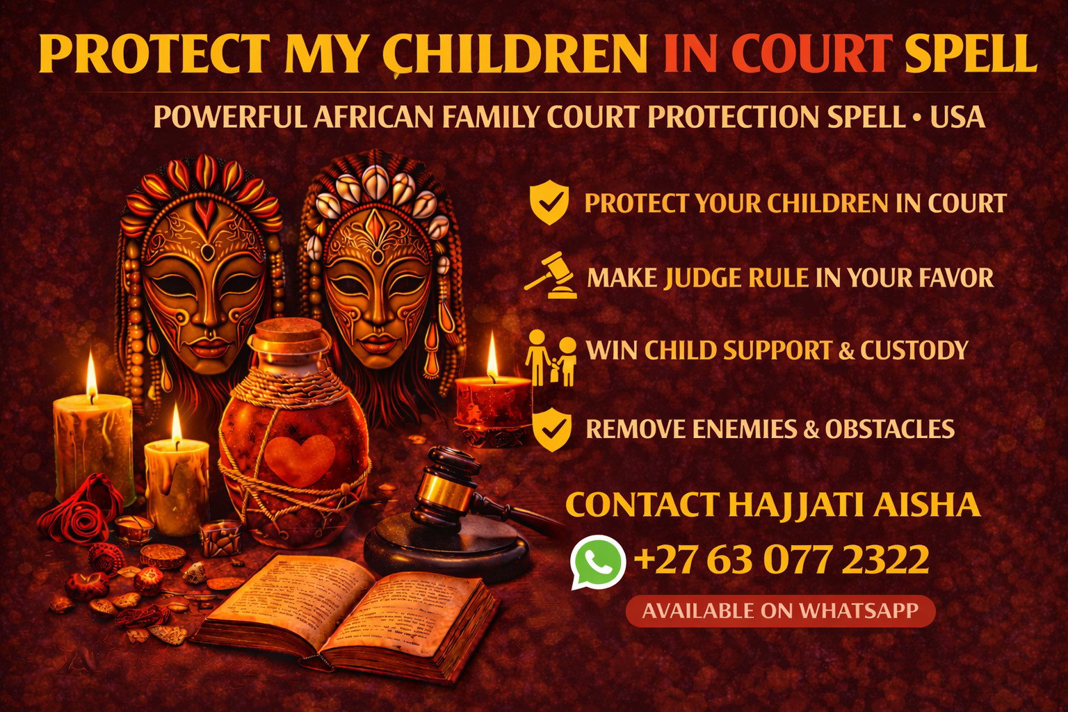 I am HAJJATI AISHA, a trusted AFRICAN SPELL CASTER, and many clients across the United States contact me when they need strong spiritual protection during legal battles. My powerful PROTECT MY CHILDREN IN COURT SPELL is designed to remove negative influences surrounding your court case and strengthen spiritual protection for you and your children.