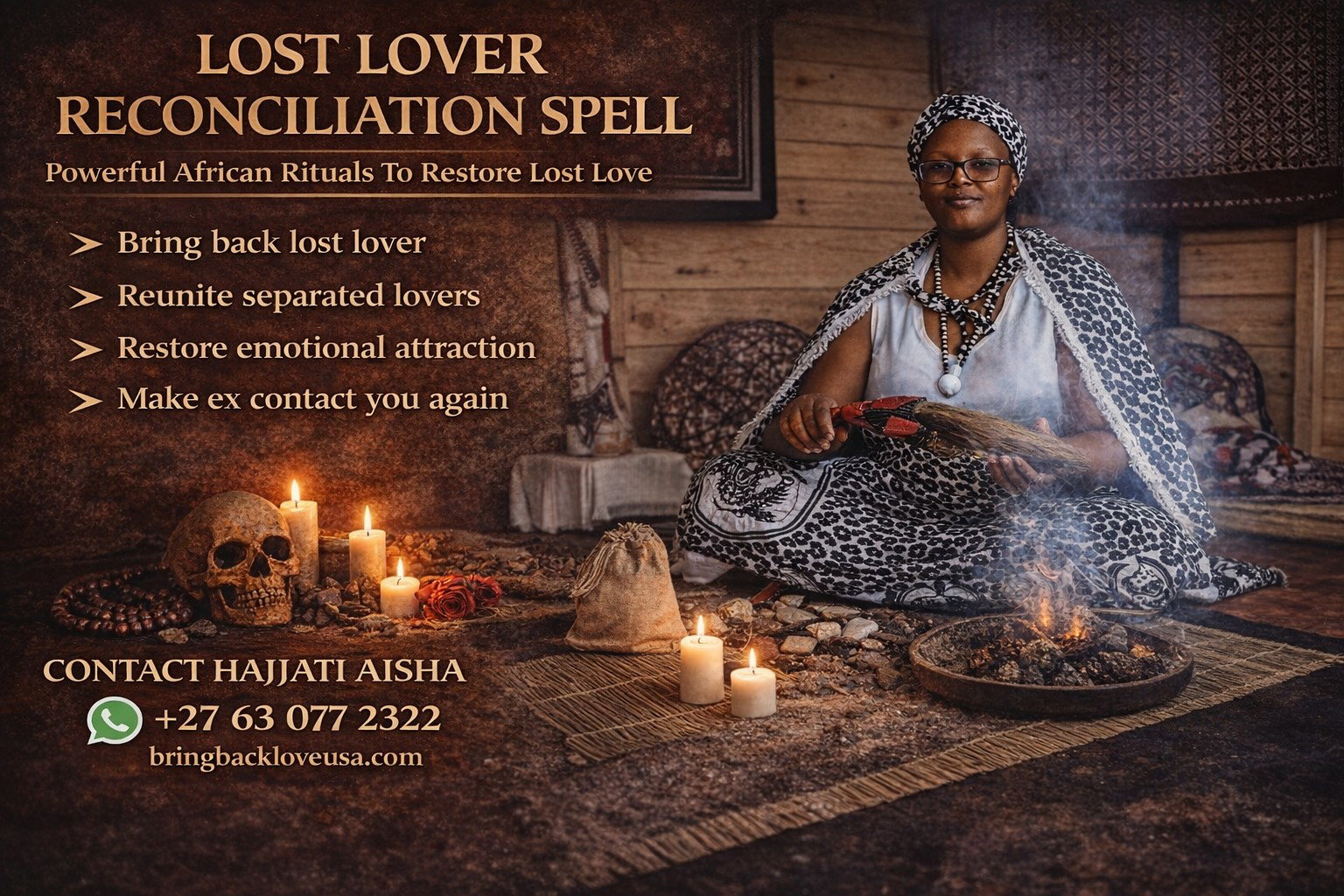 I am Hajjati Aisha, a trusted African love spell caster, and many clients across the United States contact me when they want powerful spiritual help to reconcile with a lost lover and rebuild their relationship.
