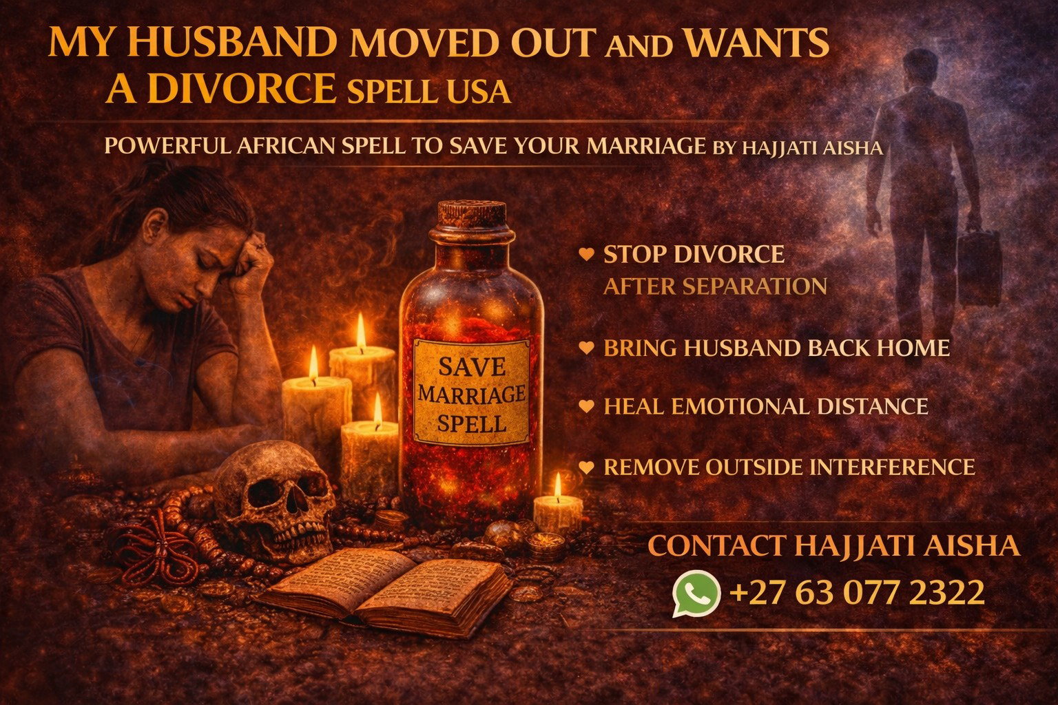I am Hajjati Aisha, a trusted African love spell caster, and many clients across the United States contact me when their husband moves in with another woman and they want powerful spiritual help to restore their relationship.