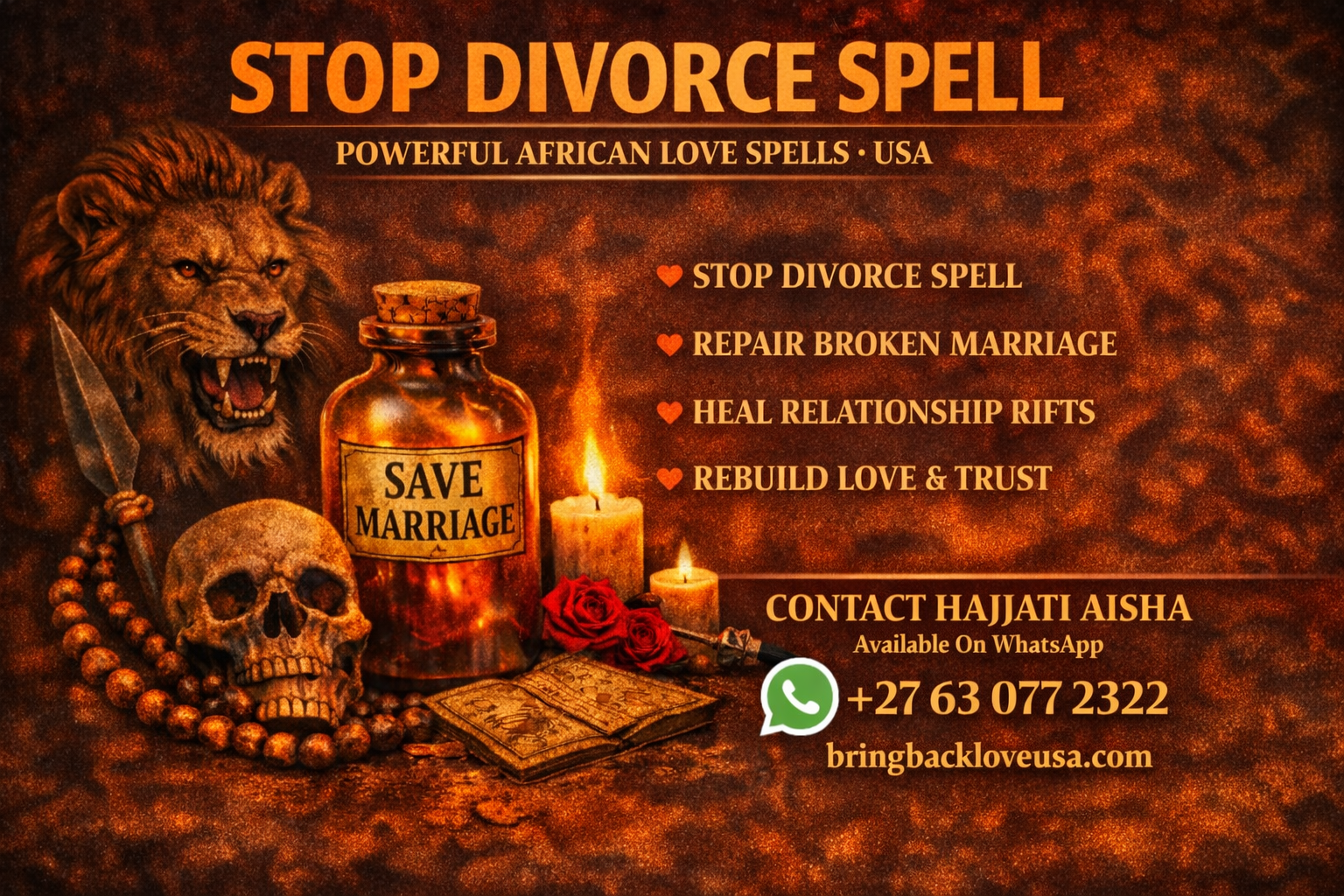 My STOP MY HUSBAND FROM DIVORCING ME SPELL is performed using traditional African spiritual rituals designed to: