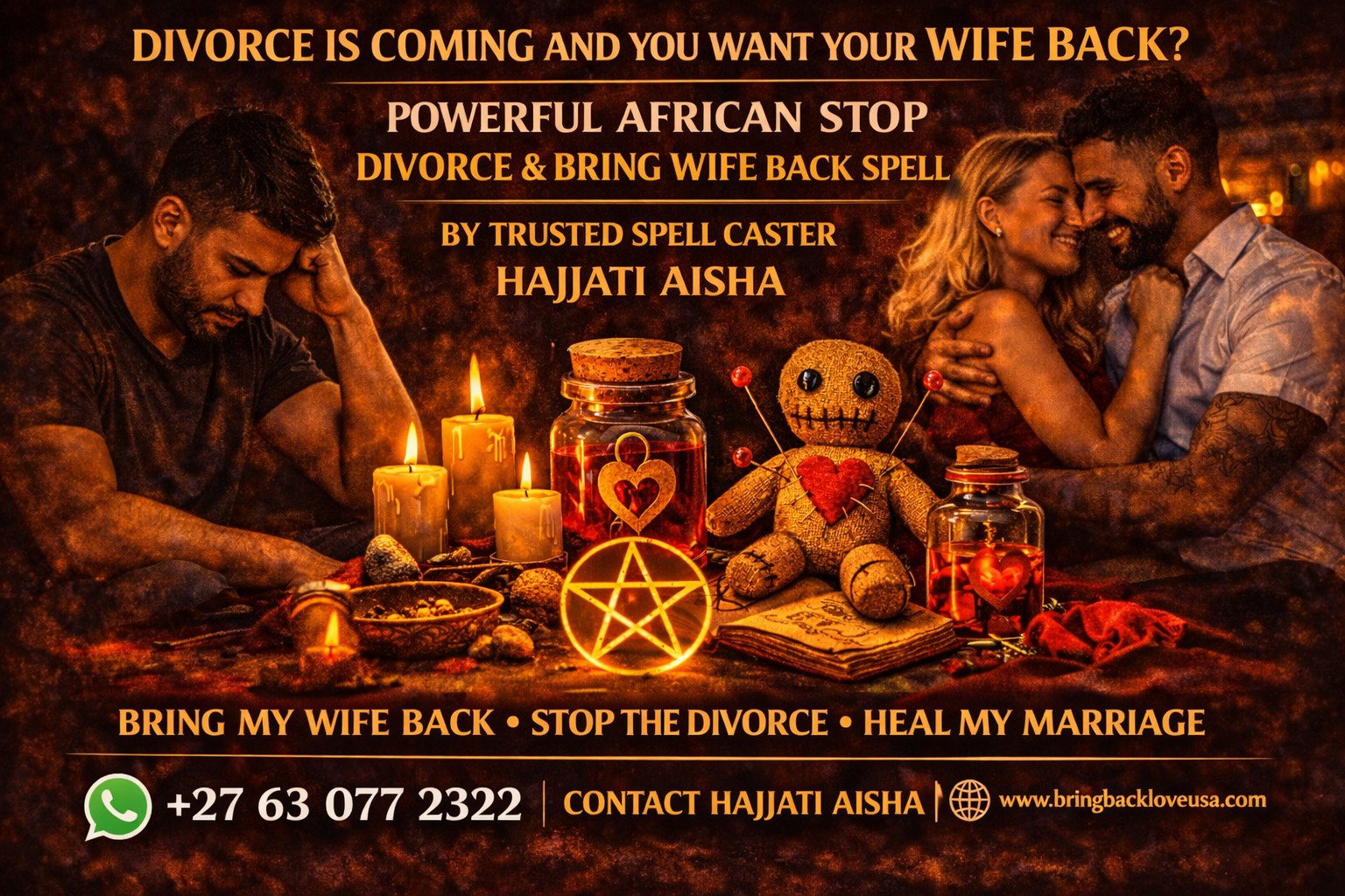 When a marriage begins collapsing and divorce feels inevitable, many men realize they still love their wife and want another chance to repair the relationship. Clients from Los Angeles, Chicago, San Diego, Houston and Miami contact me when their wife has emotionally withdrawn or left the home and they want a powerful spiritual solution to restore their marriage before divorce becomes final. I am Hajjati Aisha, known as ONE OF THE MOST TRUSTED AND POWERFUL AFRICAN SPELL CASTERS IN THE UNITED STATES, and I help restore marriages that appear to be breaking apart.